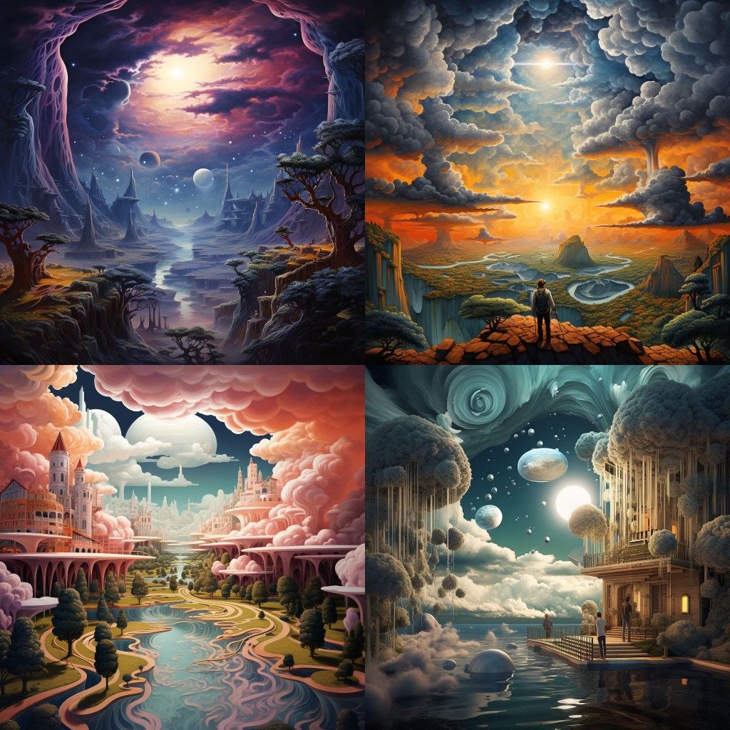 Now to choose a subject. I think I’ll choose “surreal dreamscape.” At this juncture you can put everything together in one long string. But I find you have more control if you separate the subject and the style with prompt weights.