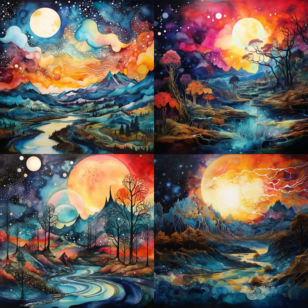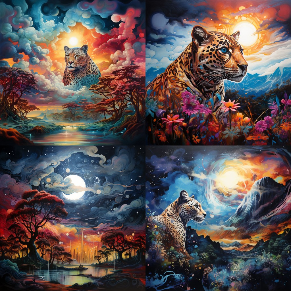 /Imagine prompt: surreal dreamscape alcohol ink::3 landscape magical realism transform jaguar sky::2