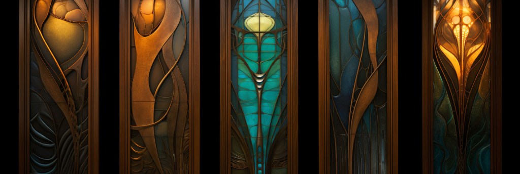 | Translucent Colors | Colors that allow light to pass through, creating a glowing effect, characteristic of Art Nouveau glasswork. |
