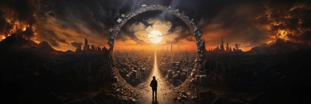 /imagine prompt: the end of the world as we know it:: magical realism, surreal, haunting imagery, soft, luminous tones, meticulous, precise details, careful, smooth brushwork:: introspective unease, social commentary, existential themes, egg tempera on wood::2 --chaos 20 --stylize 125