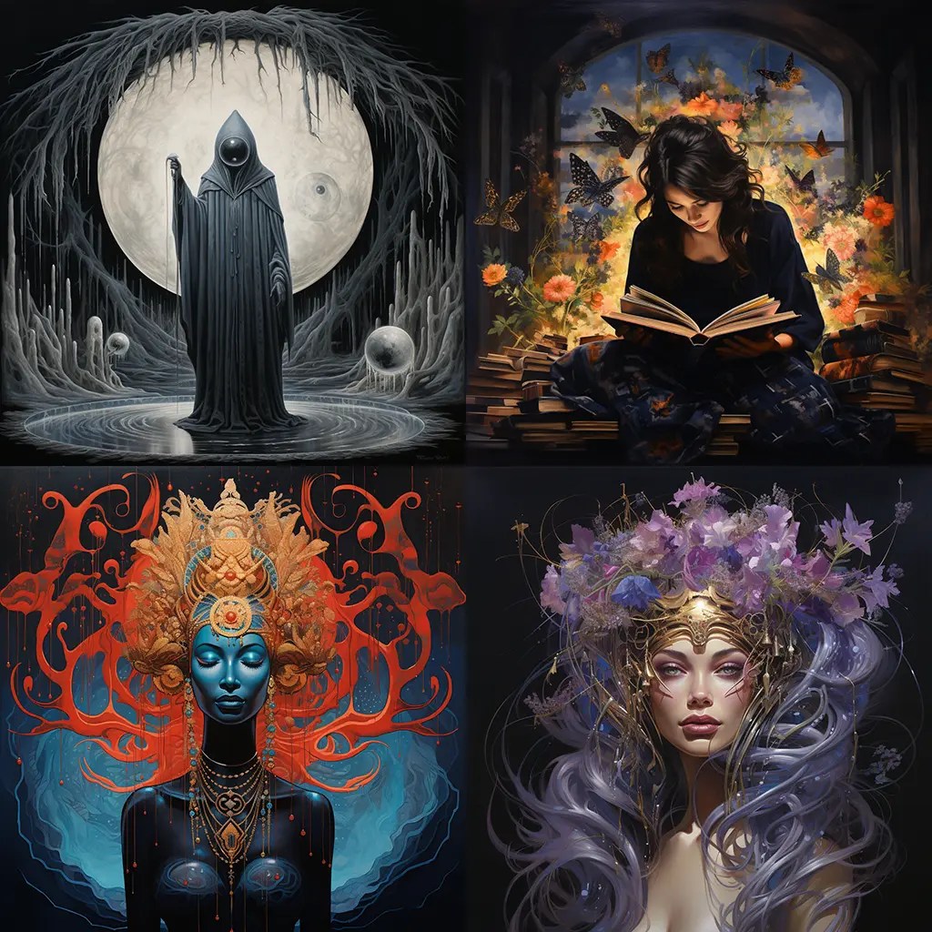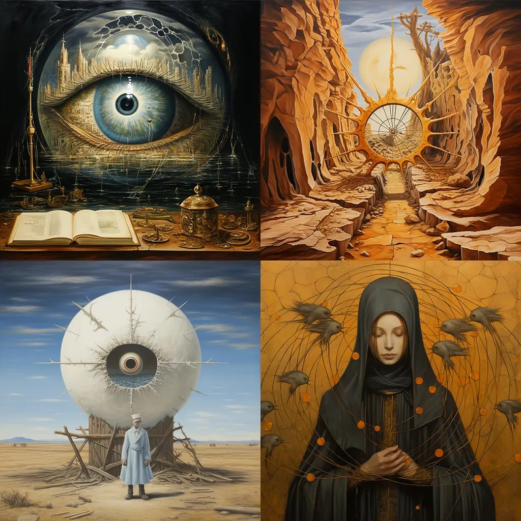 /imagine prompt: the oracle is a fount of wisdom acrylic:: mystical everyday, surreal blending of reality, dreamlike imagery, vivid, unexpected contrasts, intricate detailing, realistic textures, enchanting ambiguity, fantastical ordinary, cultural synthesis:: --chaos 20 --stylize 125