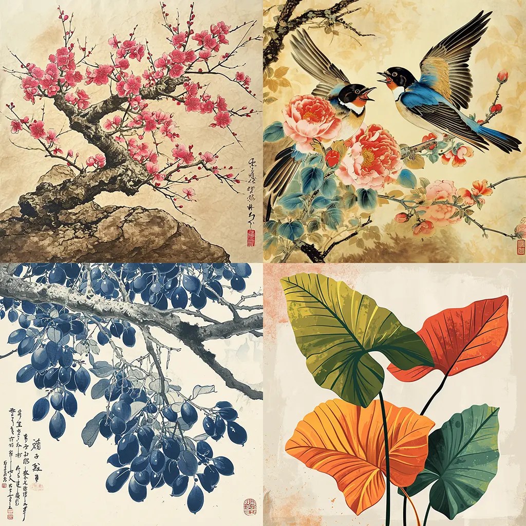 Kachō-ga: Focused on nature, Kachō-ga showcases birds and flowers, reflecting the Japanese appreciation for the delicate beauty of the natural world.